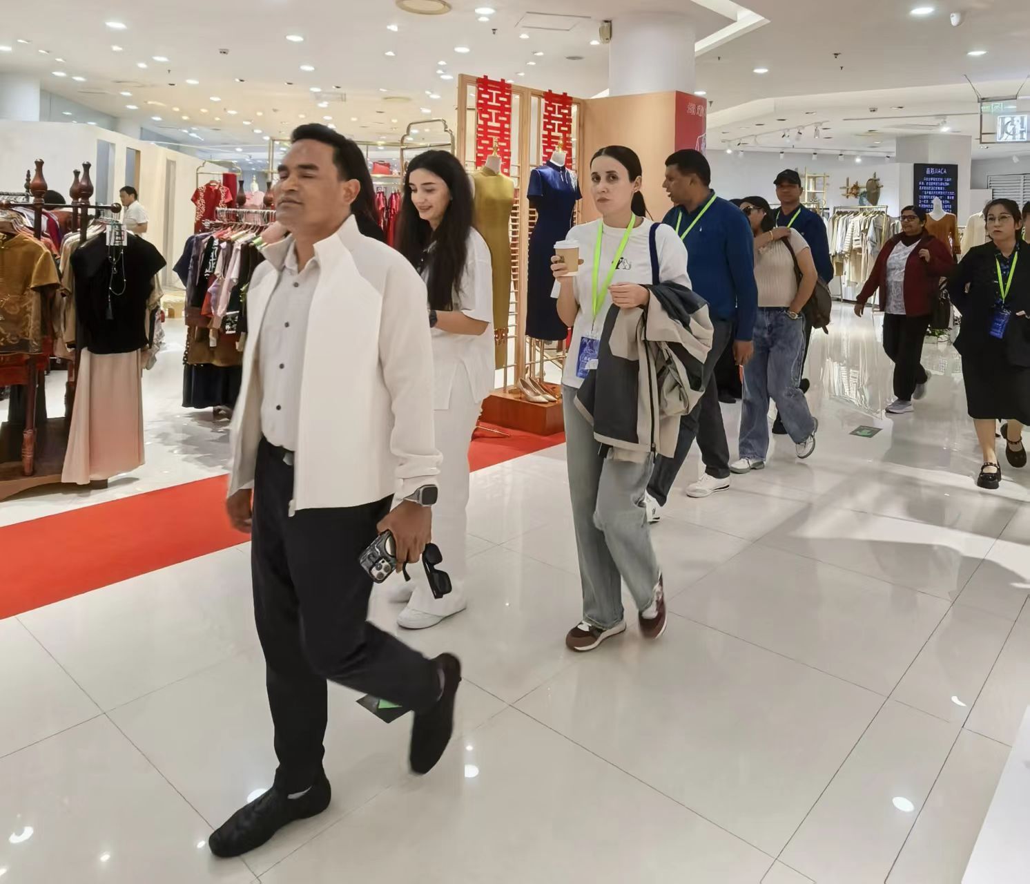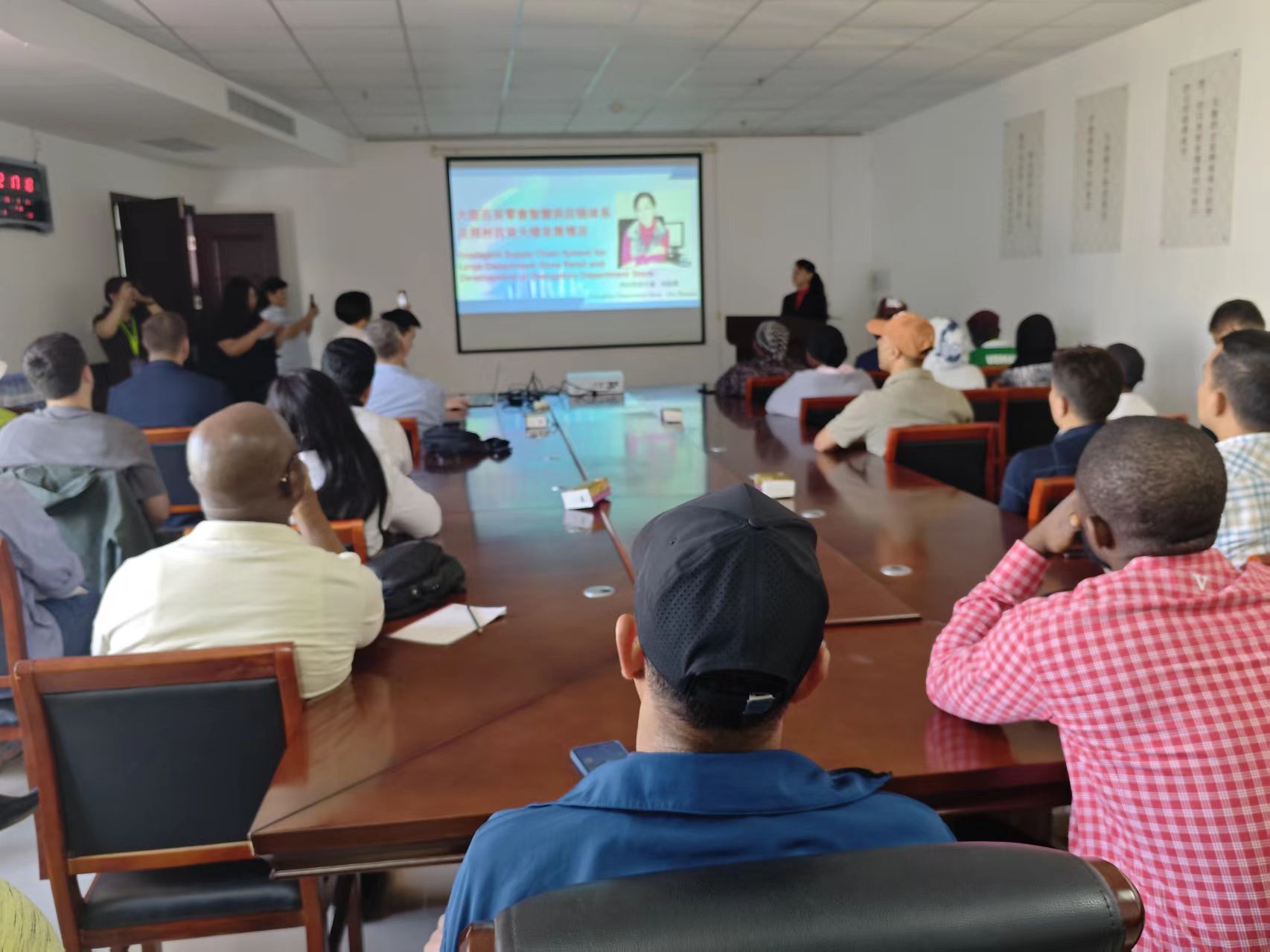 20日下午,研修班一行齐聚郑州百货大楼。外宾们不仅参观了商品陈列区域,更深入了解了其智慧供应链体系建设。董事长朱赵霞向代表团详细介绍了企业的发展历程与数字化转型实践。